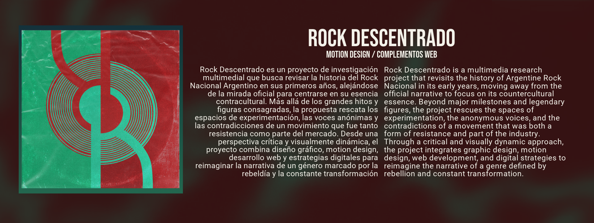 Rock Descentrado adopta un enfoque de investigación multiplataforma, integrando diversos formatos para crear un archivo interactivo y en constante evolución. El proyecto se desarrolla a través de podcasts, video ensayos, playlists curadas y cápsulas pregrabadas diseñadas para streaming, ofreciendo múltiples puntos de acceso a la historia del Rock Nacional. La página web funciona como el eje central, donde widgets, etiquetas y actualizaciones dinámicas permiten una base de datos fluida y en expansión. Esta estructura no solo mejora la accesibilidad, sino que también redefine la manera en que se consumen las narrativas históricas, permitiendo a los usuarios explorar las intersecciones entre música, cultura y memoria archivística de forma no lineal e inmersiva.