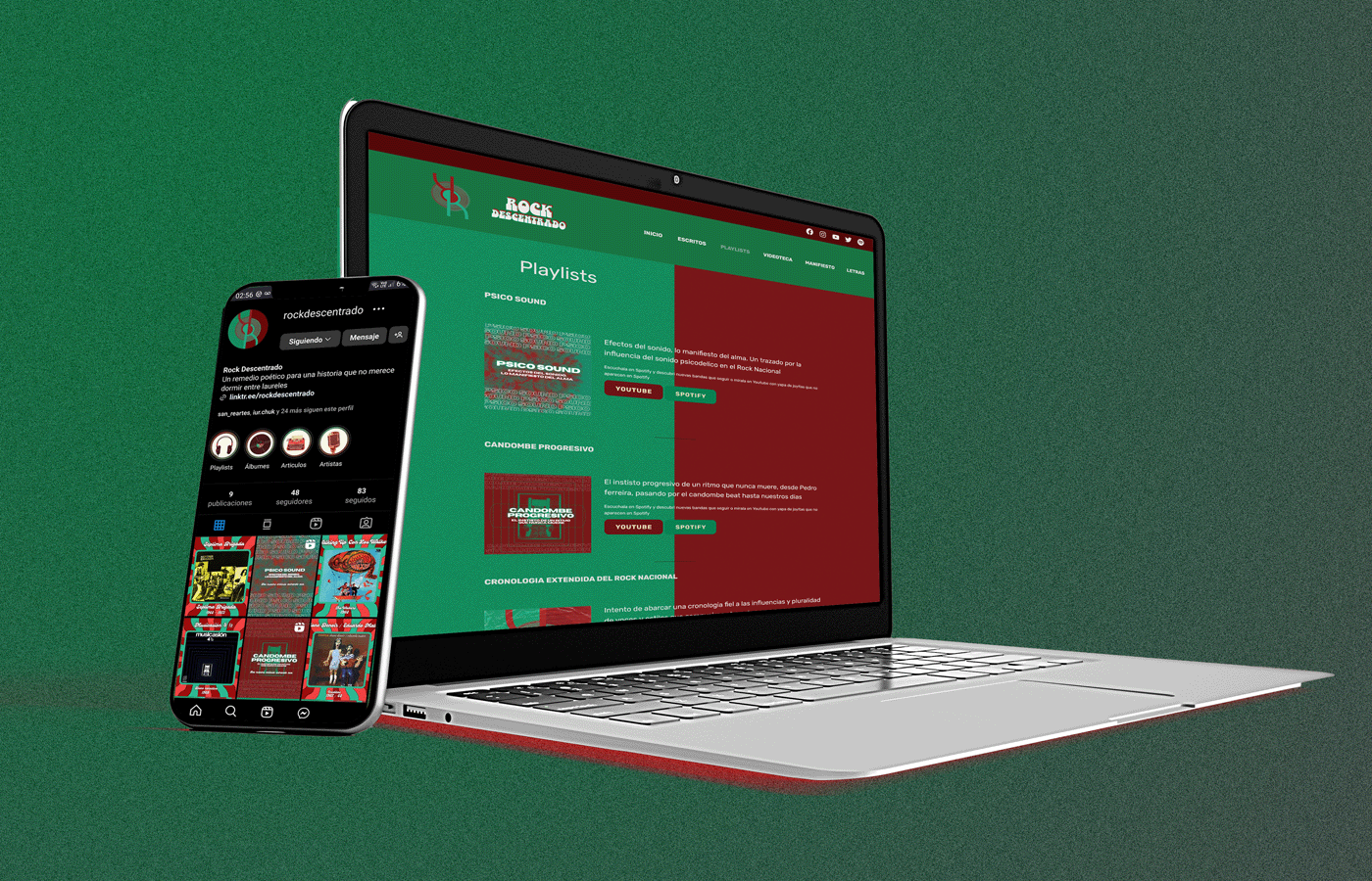 Rock Descentrado embraces a multiplatform approach to research, integrating diverse formats to create an interactive and ever-evolving archive. The project unfolds across podcasts, video essays, curated playlists, and pre-recorded capsules designed for streaming, offering multiple entry points into the history of Rock Nacional. The website serves as the central hub, where widgets, tags, and dynamic updates ensure a fluid and continuously expanding database. This structure not only enhances accessibility but also redefines the way historical narratives are consumed, allowing users to explore the intersections between music, culture, and archival memory in a nonlinear and immersive way.